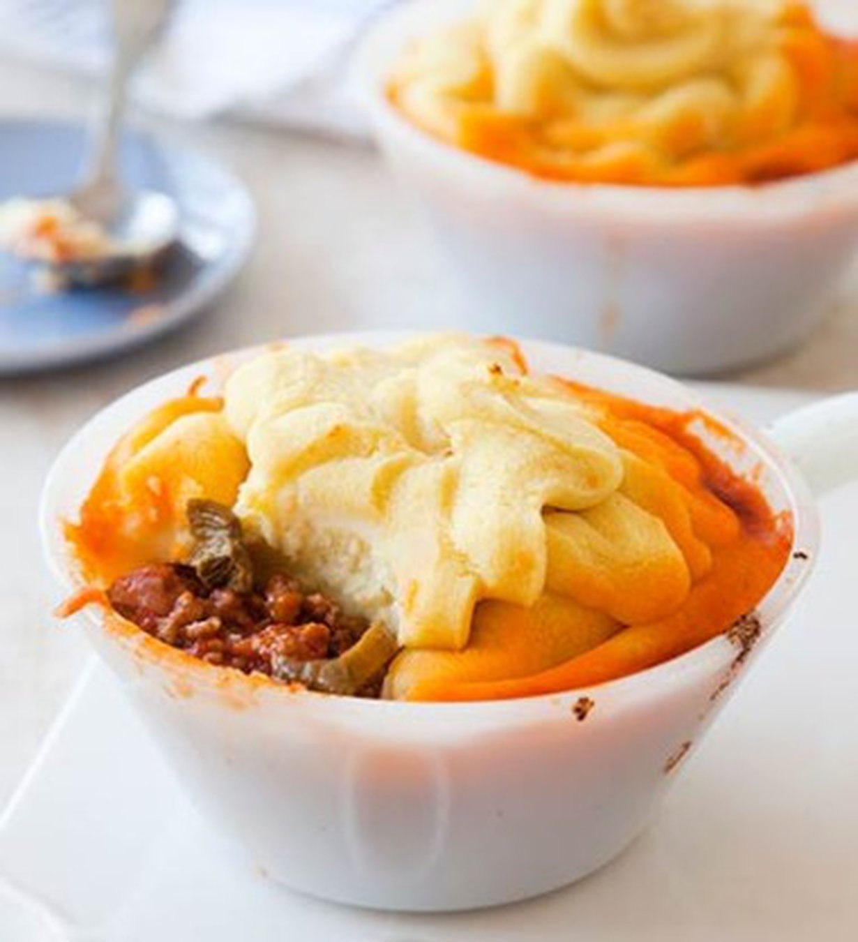Levitä jauhelihakastike voidellun vuoan pohjalle. Asettele perunaviipaleet limittäin jauhelihan päälle. Ripottele päälle kevyesti suolaa.