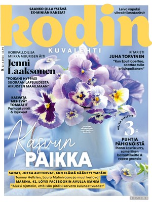 Ihmiset Muuttuiko voimalause, kun elämä yllätti? Eppujen Juha Torvinen ja neljä muuta kertovat Ihmiset Koripalloilija Miikka Muurisen äiti Jenni Laaksonen: ”Poikani hyppäsi suoraan lapsuudesta aikuisten maailmaan” Ihmiset Adhd-diagnoosi auttoi Jaanaa, 38, ymmärtämään, miksi pyykinpesukin on joskus ylivoimaista Ihmiset Riittamaijan aikuinen lapsi teki itsemurhan: ”Päihteet saivat herkästä pojastani yliotteen” Ihmiset Metsään kodin rakentanut Kirsi Salo: ”Vaikka ajatus muutosta oli minun, en ollut valmis päästämään irti pojistani” Tyyli ja kauneus Heidin, 47, keväinen tyylileikki: ”Ennen uudistusta tuntui, kuin olisin rupsahtanut täysin” Lue Ujosta ja herkästä Saana Nilssonista tuli Supo-päällikkö – ”Tajusin, että herkkyys on vahvuuteni” Ihmisten kesken Lukijan kirje: ”Kun olen kaukana, naapurit ovat äidin lähellä” Tämä ihana arki Lähetä kuvakisaan kuva avaimenperästäsi - voita Jokipiin Pellavan torkkupeitto ja tyyny Lähetä kuva! Suosituimmat artikkelit Ihmiset Muuttuiko voimalause, kun elämä yllätti? Eppujen Juha Torvinen ja neljä muuta kertovat Ihmiset Koripalloilija Miikka Muurisen äiti Jenni Laaksonen: ”Poikani hyppäsi suoraan lapsuudesta aikuisten maailmaan” Ihmiset Adhd-diagnoosi auttoi Jaanaa, 38, ymmärtämään, miksi pyykinpesukin on joskus ylivoimaista Ihmiset Riittamaijan aikuinen lapsi teki itsemurhan: ”Päihteet saivat herkästä pojastani yliotteen” Ihmiset Metsään kodin rakentanut Kirsi Salo: ”Vaikka ajatus muutosta oli minun, en ollut valmis päästämään irti pojistani” Ristikko Ristikko 7/2026 Tyyli ja kauneus Heidin, 47, keväinen tyylileikki: ”Ennen uudistusta tuntui, kuin olisin rupsahtanut täysin” Lue Ujosta ja herkästä Saana Nilssonista tuli Supo-päällikkö – ”Tajusin, että herkkyys on vahvuuteni” Sisältö jatkuu mainoksen alla Sisältö jatkuu mainoksen alla Tilaajille Lokakuun tilaajaetu: Niina Laitisen Palavaa vettä -sukat Syyskuun tilaajaetu: Niina Laitisen sukkaohje - ilmainen ohje tilaajille Kirjailija Hannu Mäkelä, 76, on tuore aviomies: ”Minusta tuli aikuinen kuusikymppisenä, sitä ennen olin murheellinen mies” Martti, 58, on isä ja parantumattomasti sairas: ”Sairastuminen oli paljon pienempi asia kuin lapsi, jota minun ei pitänyt saada” Leilan ja Lailan 50 vuoden päiväkirjat paljastavat riidat ja rakkaudet: ”Siskolta sietää enemmän kuin muilta” Kohuvuosina Susan Ruusunen peitti murheensa lapsiltaan: ”Kaikkea on tarvittu, että olen kasvanut tähän pisteeseen” Ex-piispa Irja Askola: ”Eläkkeellä löysin itsestäni avuttoman puolen, jota en tiennyt olevan olemassa” Lapsiperhearki laukaisi Aten, 35, masennuksen: ”Miten voin kokea näin, kun olen itse lapsia halunnut ja rakastan heitä?” Konkurssin jälkeen Marjo, 44, putosi itsemurhan partaalle: ”Nyt tiedän, että olen yhä arvokas” Tarja, 55, luuli pääsevänsä vaihdevuosista vähällä, kunnes heräsi kuumaan aaltoon: ”Tuli mieleen monta V-alkuista sanaa, kuten vaivat ja vanhuus” Supernanny-ohjelman Pia Penttala: ”Lapset toivovat aikuisilta sääntöjä” Rekkakuski ja Mensan jäsen Topi, 57: ”Hienot tittelit eivät ole koskaan kiinnostaneet minua” 130 kiloa laihtunut Vesa, 45: ”Jäin täysin ulkopuoliseksi ja vanhanpojan tulevaisuus pelotti minua” Maria Lohela lapsettomuuden surusta: ”Kymmenen vuoden toivomisen jälkeen on uusien unelmien aika” Maria, 41, menetti siskonsa väkivaltaisesti: ”Olimme vanhempieni kanssa hukassa ja vihaisia” Aili ja Kerttu vaihtuivat vauvoina – 93 vuotta myöhemmin Kertun tytär selvitti äitinsä salaisuuden Osallistu Ristikko 7/2026 Lukijan kirje: ”Kun olen kaukana, naapurit ovat äidin lähellä” Lähetä kuvakisaan kuva avaimenperästäsi - voita Jokipiin Pellavan torkkupeitto ja tyyny Äänestä KK:n 7/2026 paras juttu - voita lehtitilaus Lukijan kirje: ”Oma mieheni ei halua minua” Lähetä kuvakisaan kuva juhla-astiastasi - voita Jokipiin Pellavan torkkupeitto ja tyyny Lukijan kirje: ”Miten antaisin äitinä itselleni anteeksi?” Lähetä kuvakisaan kuva lempilevysi kannesta - voita Jokipiin Pellavan torkkupeitto ja tyyny Lukijan kirje: ”Minua kiusattiin pienenä koululaisena, ja se kaihertaa mieltäni yhä” Lähetä kuvakisaan kuva esiliinastasi - voita Jokipiin Pellavan torkkupeitto ja tyyny Lukijan kirje: ”Kuuntelen siskoni murheita jatkuvasti” Lähetä kuvakisaan kuva pääsiäispupustasi - voita Jokipiin Pellavan torkkupeitto ja tyyny Lukijan kirje: ”Rakas, muistisairas mieheni on sidottu tuoliin tai sänkyyn” Lukijan kirje: ”Miehen kotona kaikki on aivan kuin kuollut vaimo asuisi vielä siellä” Lähetä kuvakisaan kuva reseptivihostasi - voita Jokipiin Pellavan torkkupeitto ja tyyny Lähetä kuvakisaan kuva kirjanmerkistäsi - voita Jokipiin Pellavan torkkupeitto ja tyyny Suuri Käsityö Kevään odotettu mekkoextra on vihdoin täällä! Katso numeron 4/26 kaikki mallit videolta. Korjaus 9/25 neuletakin (malli 13) kaarrokkeessa lisättyjen silmukoiden määrään Lisäys Hittineuleet jämälangoista -lehden Romanssi-sukkien kaavion selitteisiin. Korjaus SK 11-12/25 Sydäntalvi-puseron (malli 25) lankavaihtoehtoihin Täydennys SK 1/26 Linja-housujen (5) ohjeeseen Maaliskuun raikas numero on nyt julkaistu! Tutustu lehden 3/26 malleihin videolla. Korjaus SK 11-12/25 Talviuni-peiton (malli 25) ohjeeseen Helmikuun upea talvinumero on ilmestynyt! Tutustu lehden SK 2/26 malleihin videolla. Muuta jämälangat muodiksi - uutuuslehden ohjeilla teet huikeita hittineuleita keristä, jotka löytyvät jo kaapistasi! Korjaus SK 1/26 takin (malli 7) mittatietoihin ja kaavan leikkuuseen Korjaus SK 1/26 Ivy-mekon (27) takahelman leikkuuseen ja hihan ompeluun. Tammikuun lehti on julkaistu! Tutustu numeron SK 1/26 malleihin videolla. Korjaus SK 11-12/25 neulepuseron (malli 17) kaavion selitteisiin. Korjaus SK 11-12/25 Tähtiyö-lapasten (24) ohjeeseen ja kaavioon Marras-joulukuun ihana leh