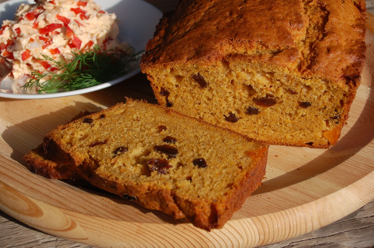 Vatkaa survottu bataatti, rasva ja munat keskenään. Yhdistä jauhot, leivinjauhe, mausteet ja sokeri toisiinsa ja lisää ne taikinaan. Sekoita kuohkeaksi ja lisää vielä rusinat. Kaada taikina voideltuun vuokaan. Paista 180 asteessa noin tunnin ajan. Tarjoa esim. paprikavoin kanssa.