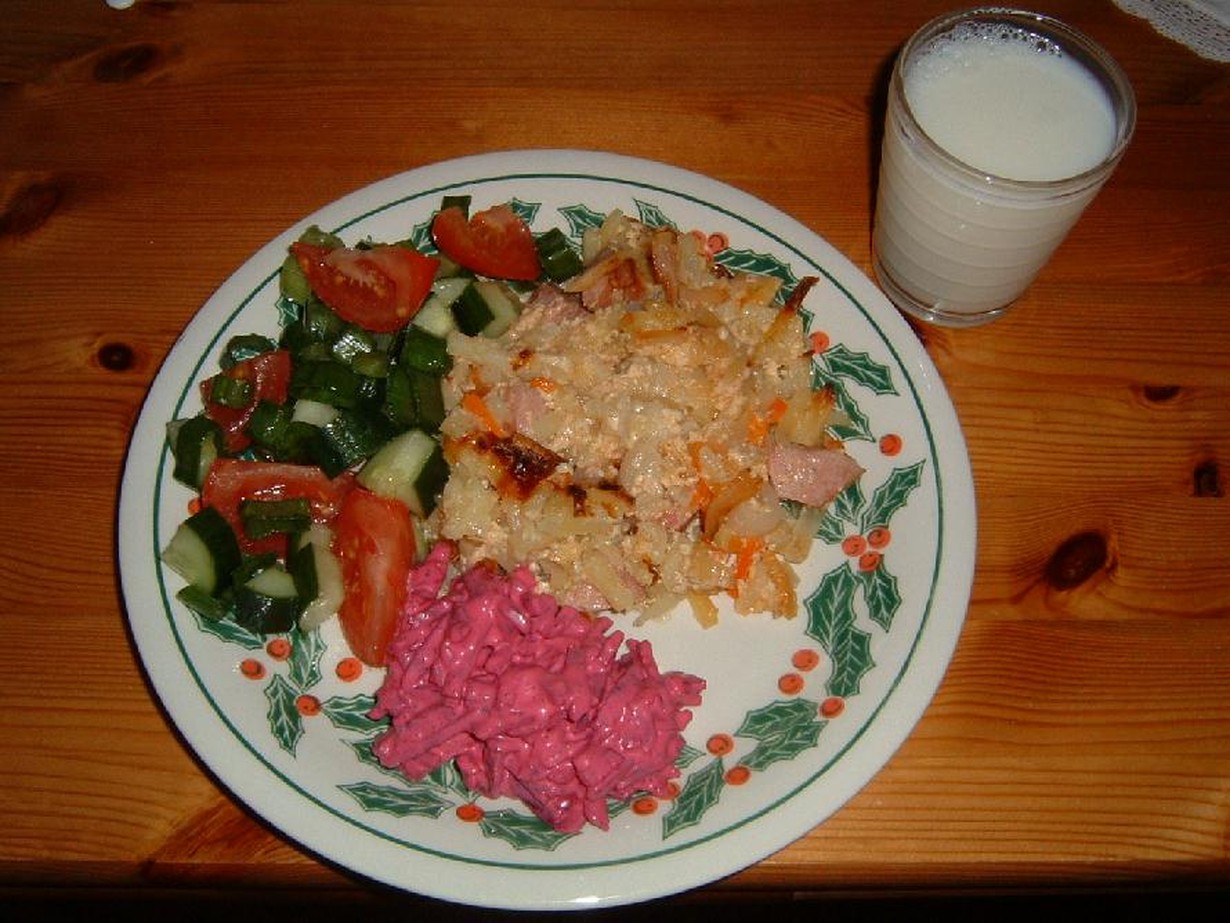 Välillä tulee tarkasteltua jääkaapin ja pakastimen sisältöä ja sitten miettiä mitä niistä voisi valmistaa. Kuvassa on annos, jonka kuvauksen jälkeen nautin.