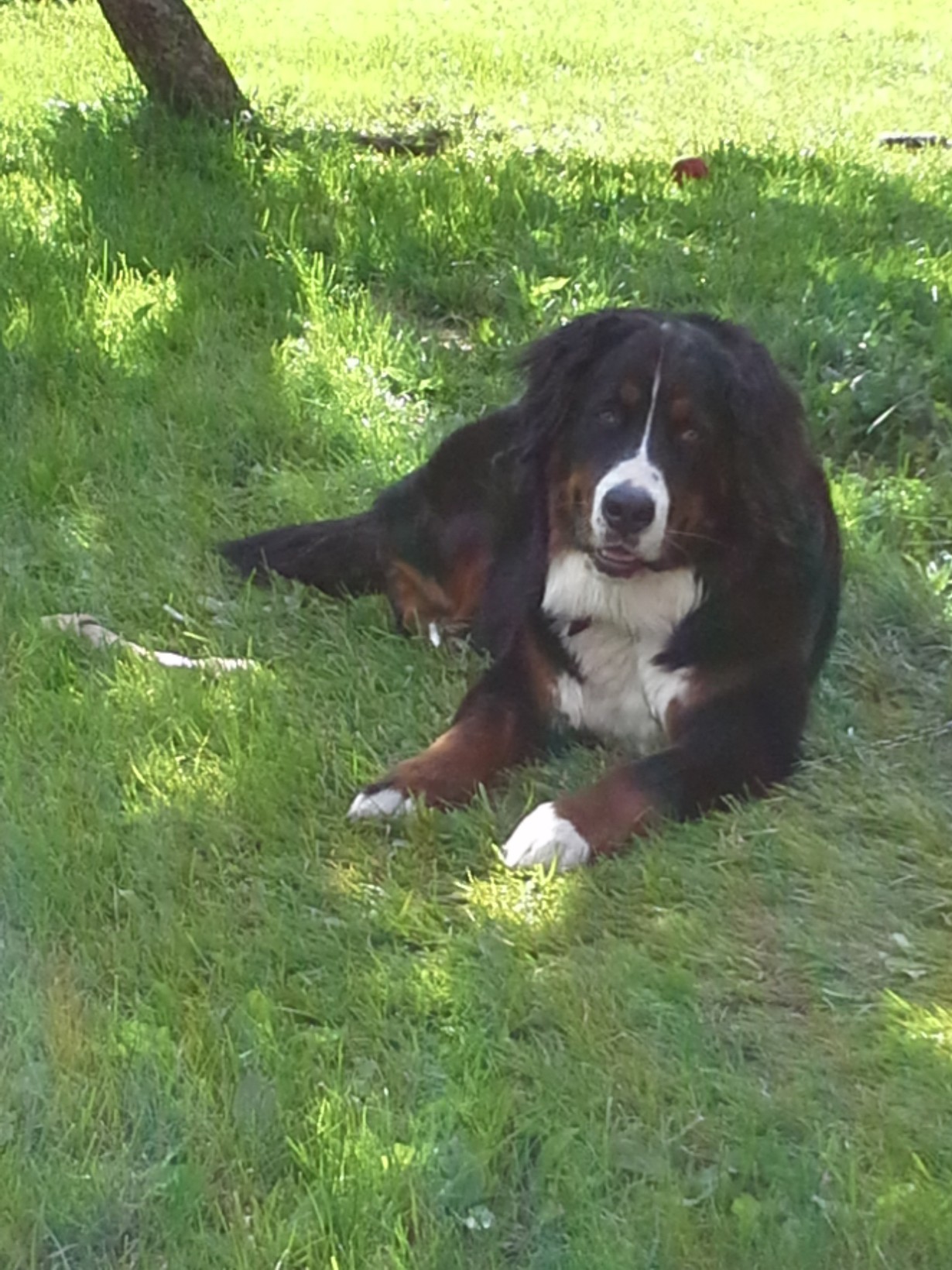 1,5 - vuotias Elli on haettu Transsilvaniasta Romaniasta. Alunperin ensimmäiseksi nimeksi valikoitui Hertta koiran sydämellisen ja iloisen luonteen vuoksi. Elli puolestaan oli sopivan tyttömäinen nimi, joka lopulta vakiintui kutsumanimeksi. Tässä Elli nauttii tapansa mukaan kesäpäivästä lokoisasti nurmikolla loikoillen.