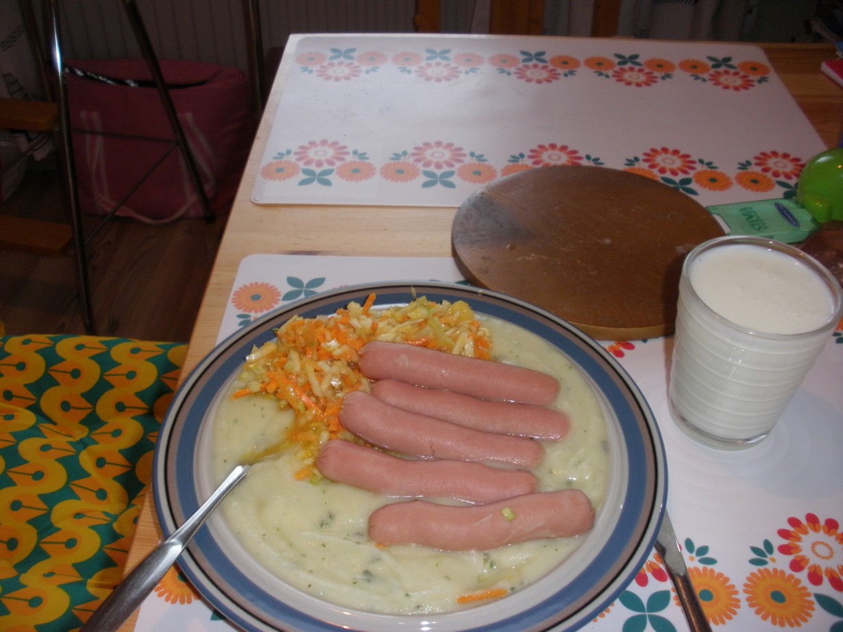 Mitä Suomi syö? Iltaateria 3.9.2013 klo 13:20 Söin iltaaterialla nakit ja muusin sekä suvisalaattia juomaksi rasvatonpiimä. arkiateria