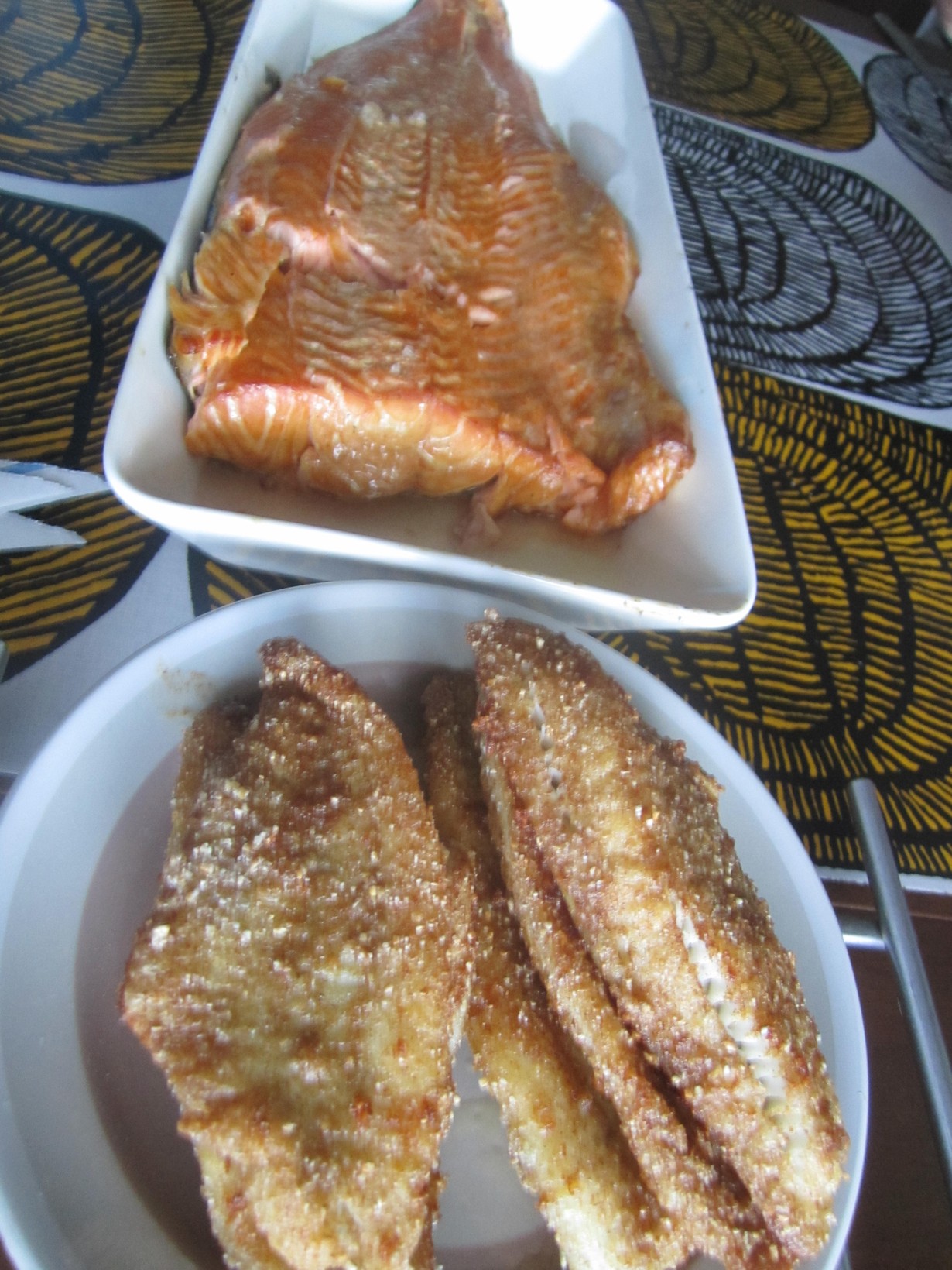 Mitä Suomi syö? Kalaaaa 5.9.2013 klo 20:28 Tänään oli sattumoisin kahta kalaa; ahvenfileitä ja itsesavustettua lohta, lisukkeena oli salaattia. Parasta ikinä. MaaKe