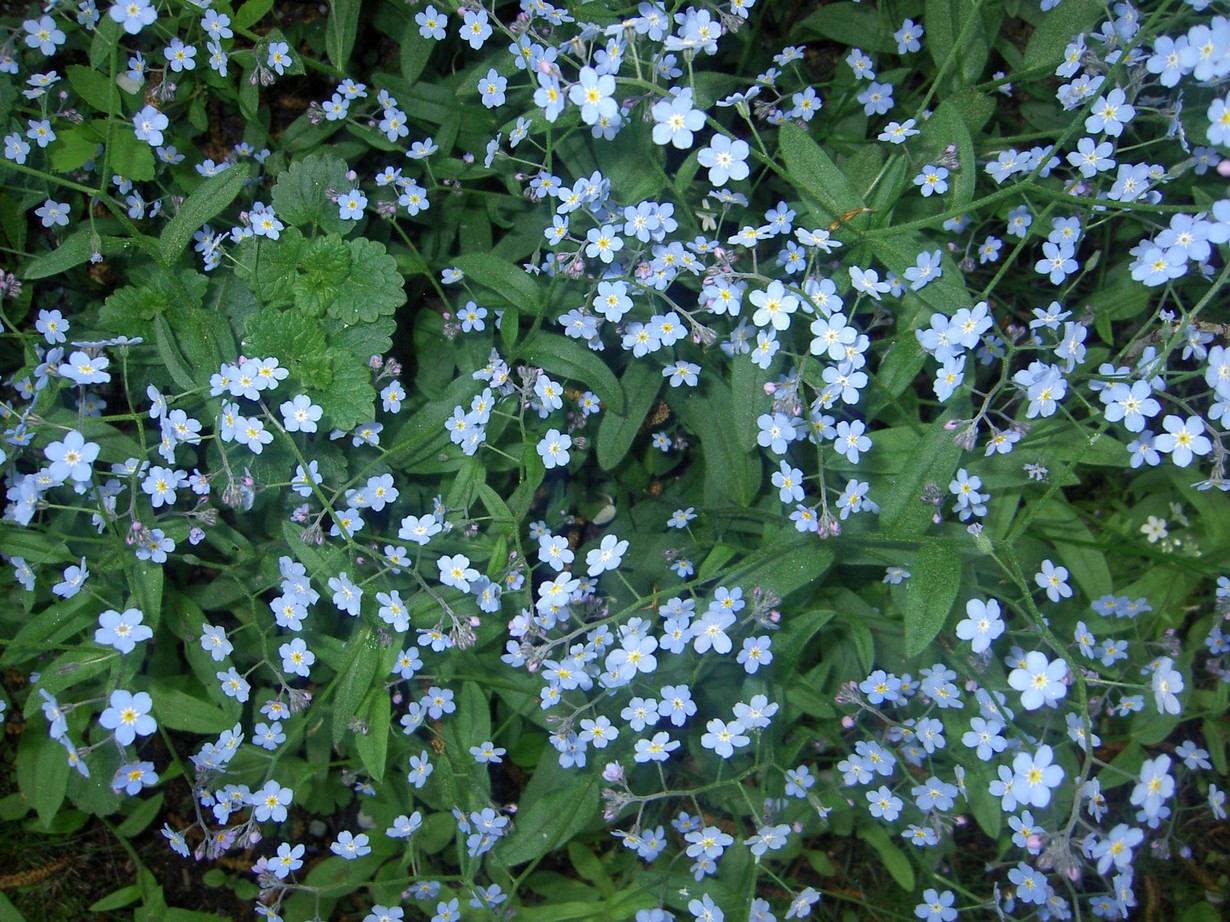 Alkukesän ihanuus, lemmikki, on vallannut alaa pihastamme ja valinnut viisaasti pensasaidan vierustan kirsikkapuun takaa, joten siellä se saa rauhassa sulostuttaa pihaa. Muistutan aina miestäni, että sinne ei saa ruohonleikkurin kanssa mennä kukinta-aikana. Pienet siniset kukkaset ovat niin kauniita!