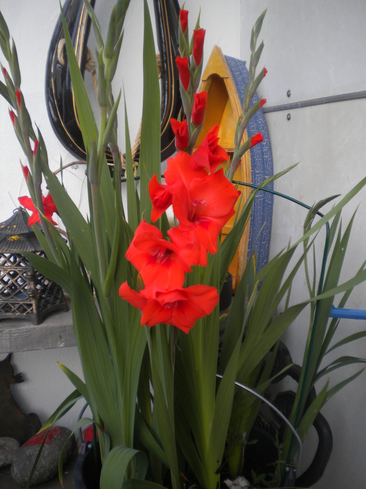 ...muoviämpärissä parvekkeella kasvattamani glariolukset..,niitähän oli kaksi ämpäriä ja tässä ensimmäisiä nuppuja aukeamassa.....