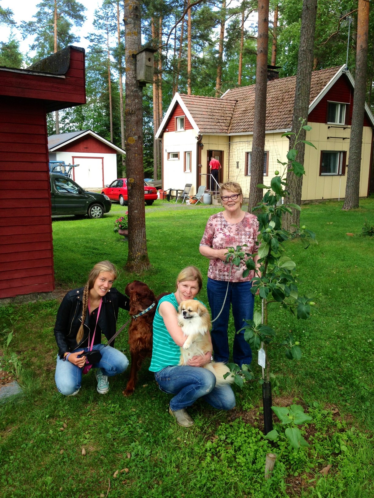 Karu arki KOTI 1.6.2014 klo 13:57 PERHEEN JÄSENET IHAILEE ISTUTETTUA OMANAPUUTA,LEMMIKKIEN KANSSA PERHEENI