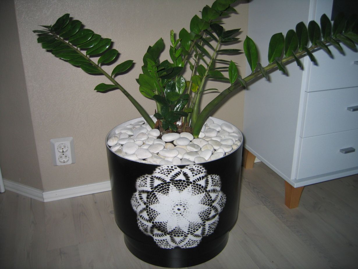 Ideat kiertoon! Kukkapurkki 7.7.2014 klo 12:27 Vanhan valkoisen muovisen kukkapurkin tuunaus.Mustaa spray maalia ja pitsiliina :) Mummo