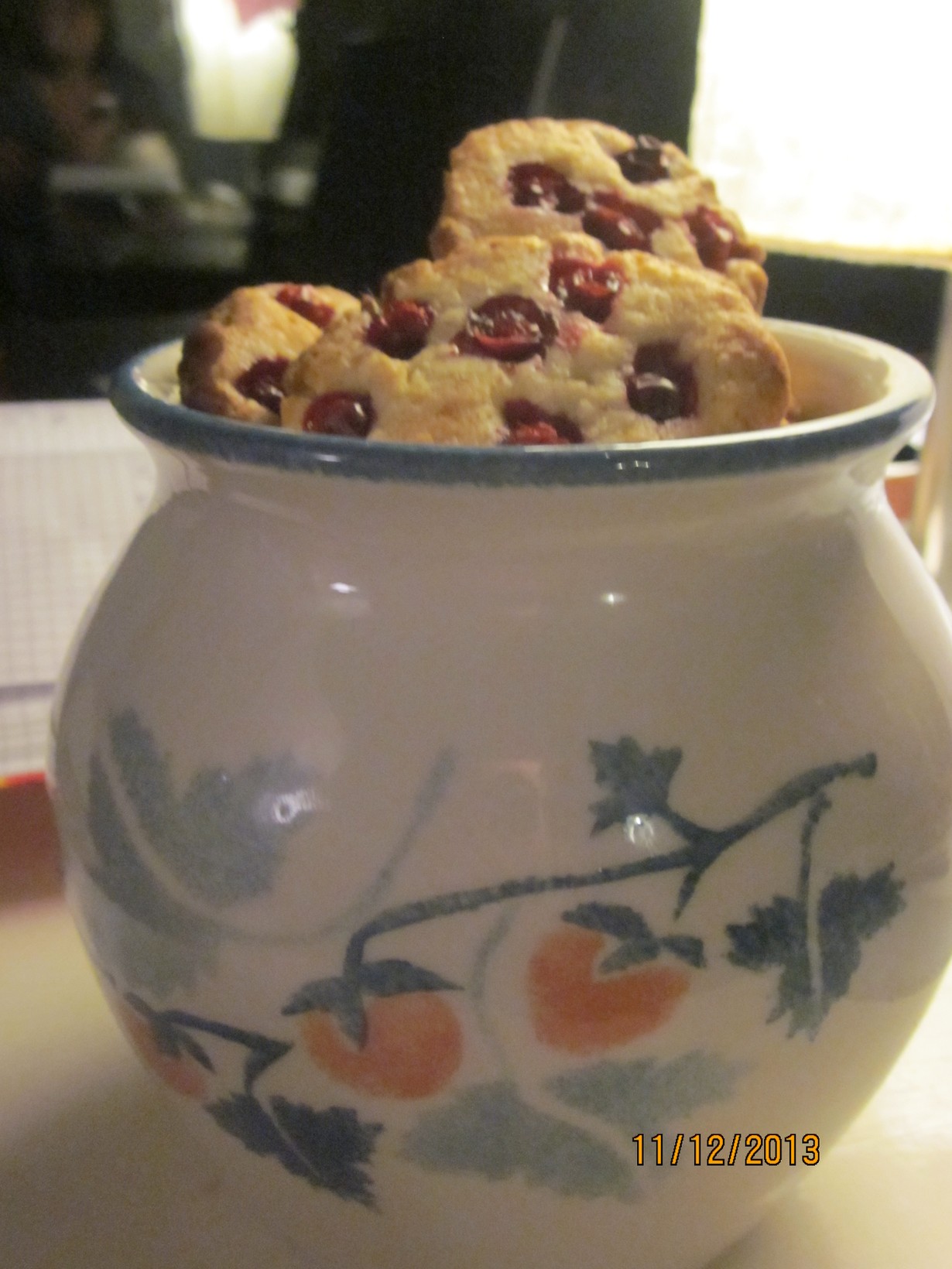 lisätään. Paljon valkosuklaarouhetta. Palloset litistetään , kuvioidaan ja kuvioihin puolukoita.200 ast.10 min. Valmis