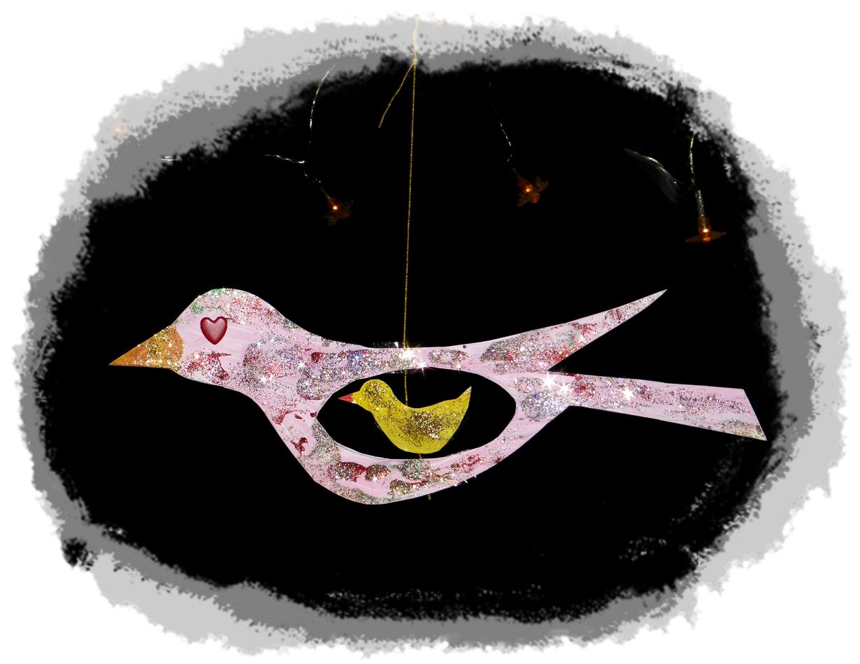 Askartelin amerikkalaisen blogi-isän Joel Henriquesin http://madebyjoel.com) inspiroimana suloisen äitilinnun lapsineen. Glitterit ja sydänsilmä ovat oman luovuuteni kukkasia. Vain sydämellä näkee hyvin! Onnellista joulua kaikille.
