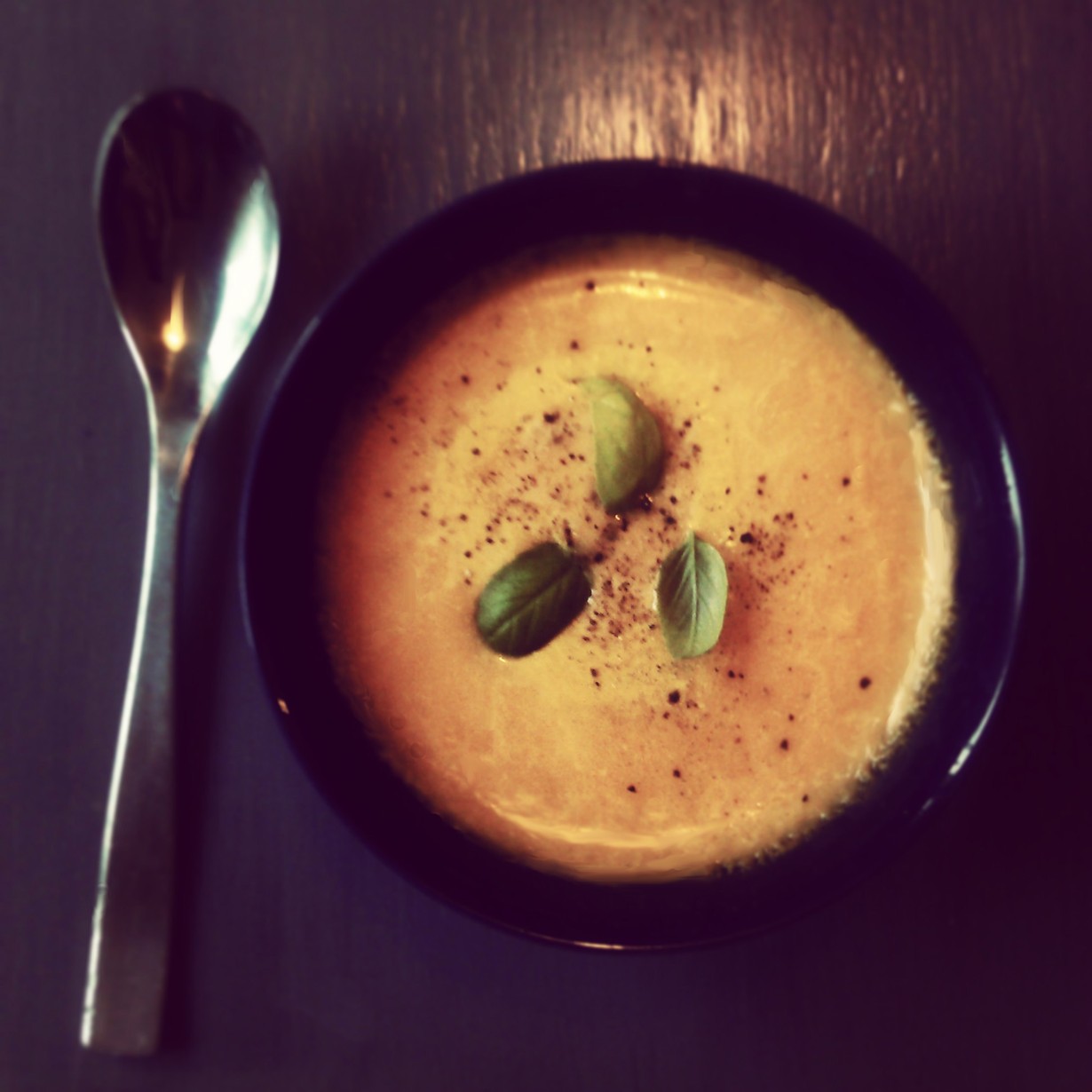 Syksyisenä iltana kotona on mukava syödä ihanan pehmeää ja mausteista bataattiporkkanakeittoa, jonka poikaystäväni valmisti meille.