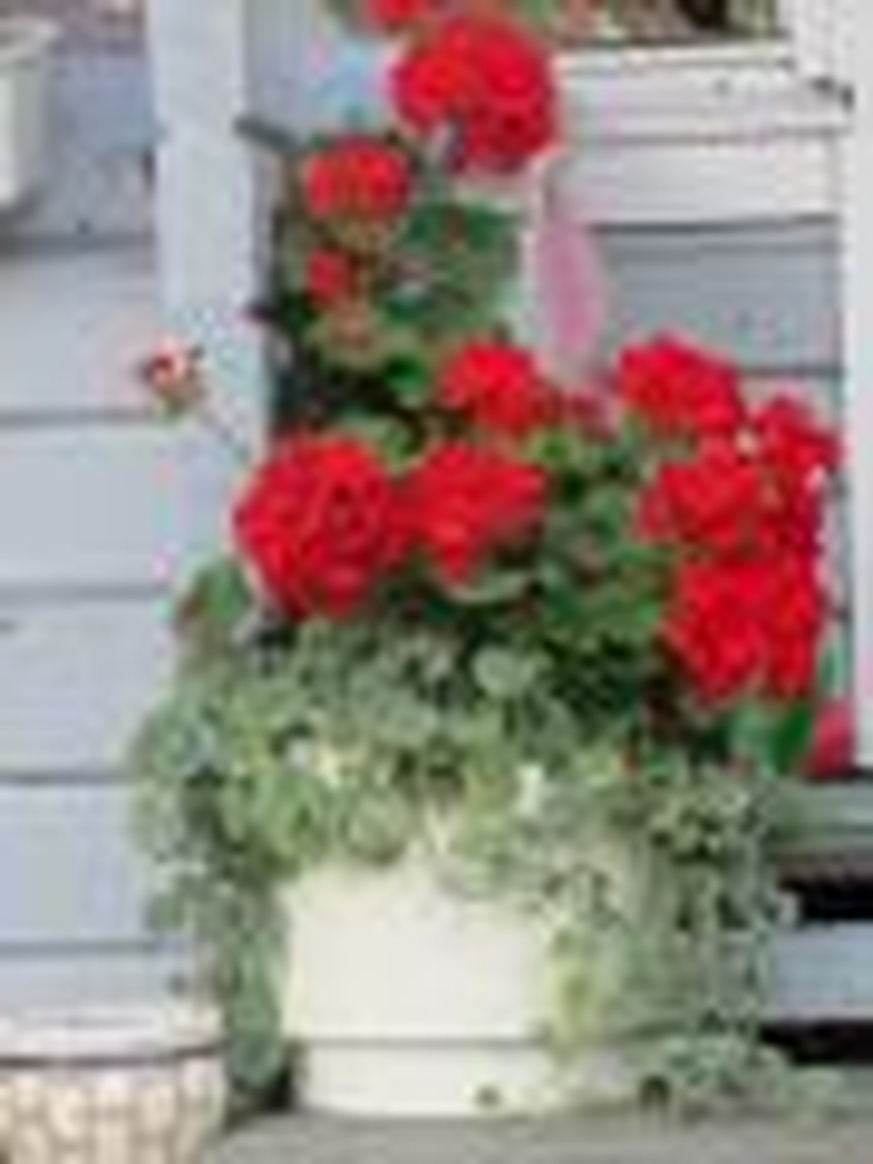 N. 30 vuotta vanha pelargoniani kukkii kesä kesältä upeana. Tässä se on saanut juurelleen innokkasti rönsyävän maahumalan. Talvetan pelrgoniani pimeässä maakellarissa loka-/marraskuulta helmi-/maaliskuulle ja aina välillä käy myös niin, että tuona aikana lumivallit tukkivat kellarin oven, joten saattavat olla siellä koko ajan kastelematta.