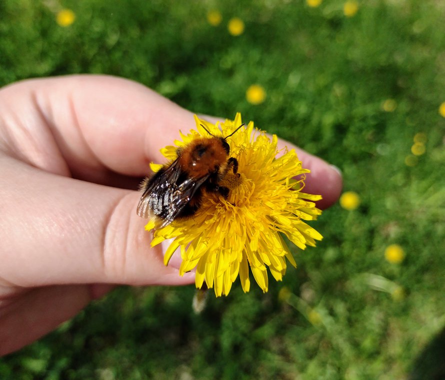 Kimalainen käveli hiljattain kuumana päivänä uupuneena vanhan lapsuudenkotini portailla. Nappasin voikukan ja tarjosin. Hetken lepäsi ja nautti ravintoa, sitten lähti lentoon.