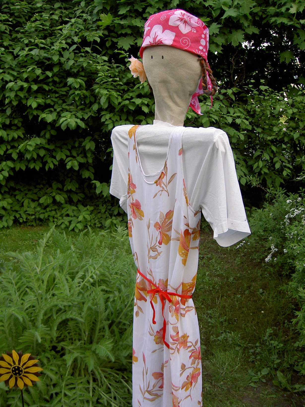 Meidän tonttumme on Garden girl, joka vartioi kasvimaan reunassa. Sille syntyi tarvetta, kun linnut tuppasiavt pöllyttämään kaikki kylvökset sekaisin.