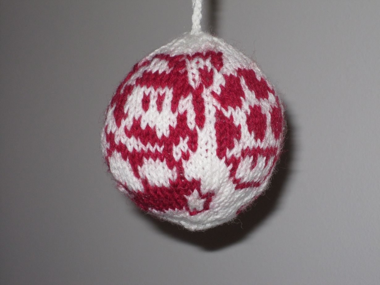 Innostuin neulomaan joulupalloja Arnen & Carlosin ohjeilla ja mieheni halusi muokata hieman perinteisistä poikkeavan mallin. Hänen piirroksensa mukaan neuloin kyseisen pallon.
