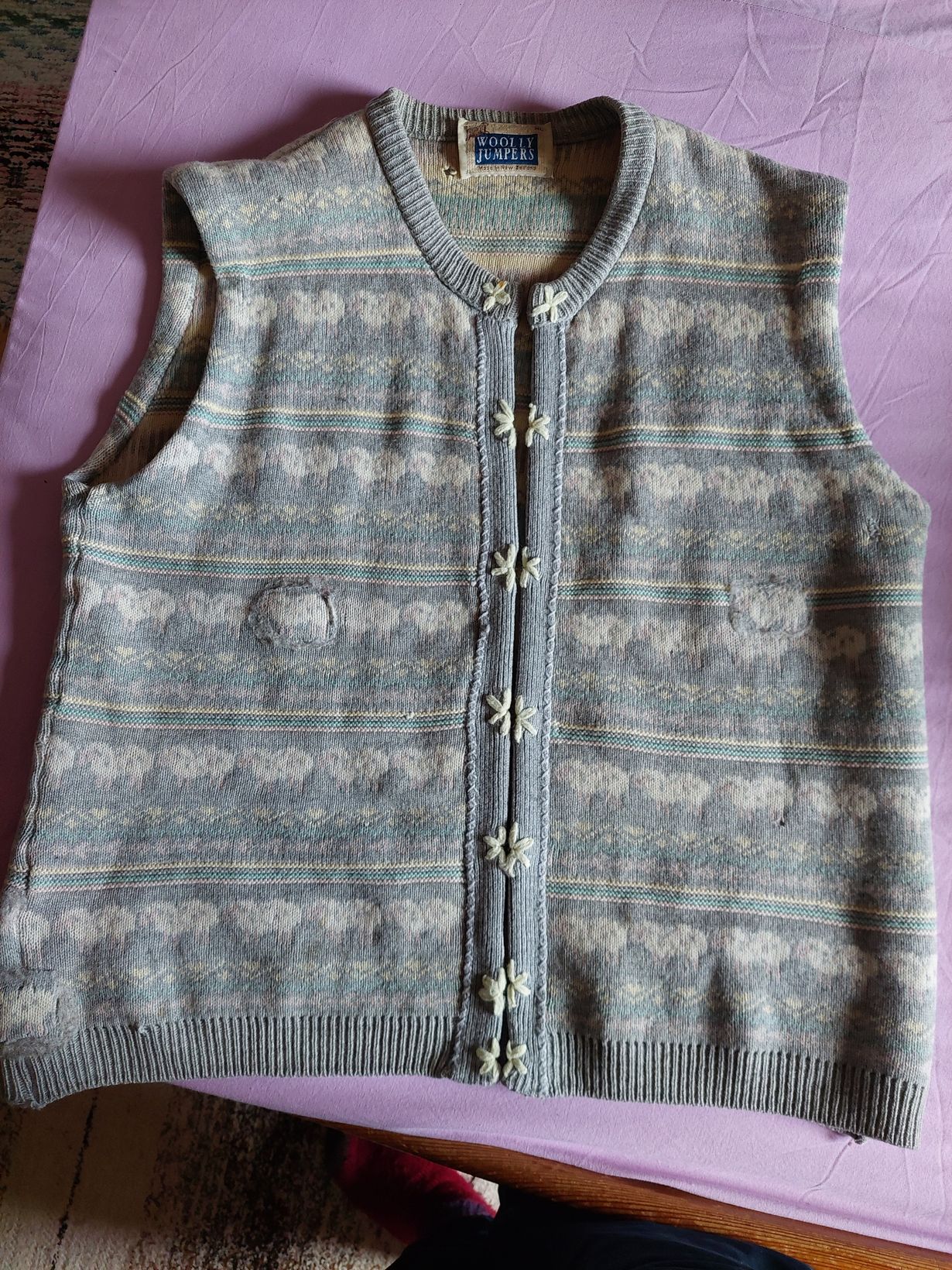 Ostin Uudesta Seelannista villatakin.Tein siitä liivin.
