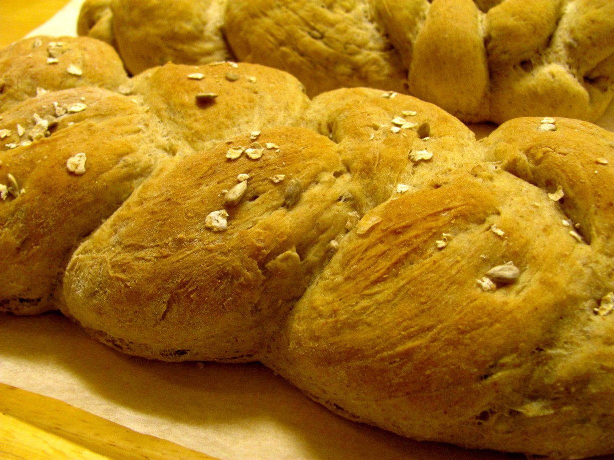 Kehittelin tämän ohjeen omasta päästäni ja eri ohjeista soveltaen. Auringonkukansiemenet tuovat leipään hieman pähkinäistä makua. Halusin myös kokeilla leivän letittämistä. Leivon mieluummin leipäni itse, kämppikset tykkää! :)