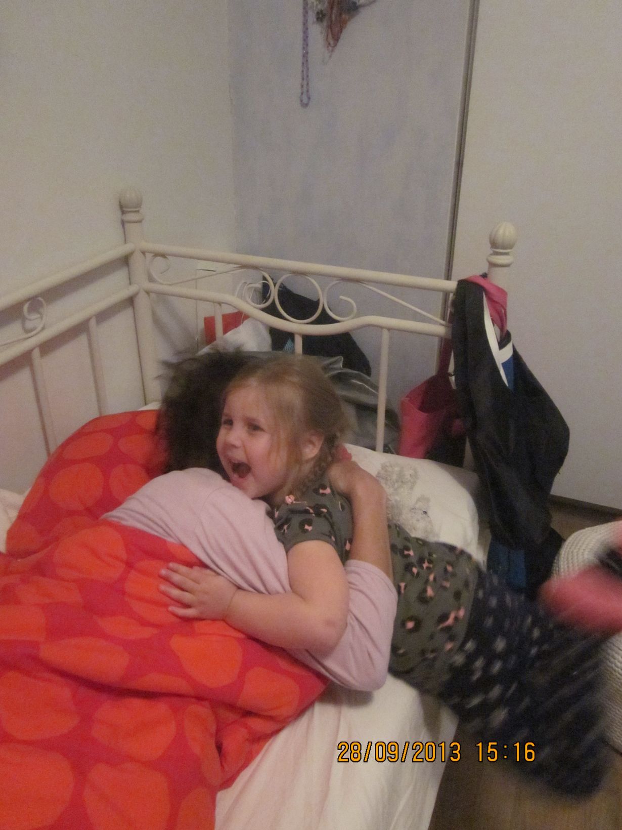 Halaus Yövuoron jälkeen 5.10.2013 klo 18:14 Yövuoron jälkeen nukuin ja lapsenlapsista kaksi nuorimmaista tuli käymään. Jadessa halii minua hereille tässä. Kati