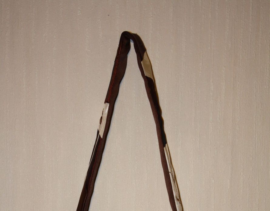 Grazy quilting -tekniikalla tehty juhlava käsilaukku. Kankaat ovat satiinia, taftia yms. Laukussa on koristekirjailuja ja silkkinauhoja koristeena. Vuoritetty paksulla satiinilla. Myös olkahihna on tilkkutyötä. Leveys 26 cm, korkeus 16 cm, olkahihnan pituus 64 cm. Huolellista työtä. Jokainen laukku on ainoa laatuaan, sillä tilkkujen muoto ja järjestys muotoutuu työn edetessä.