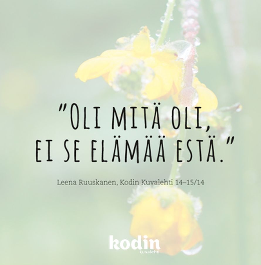 Elämästä 7.9.2014 klo 12:15 Mitä ajatuksia oivallus sinussa herätti? Tilaa Kodin Kuvalehti ajatus oivallus voimalause Tilaa Lue digilehtenä