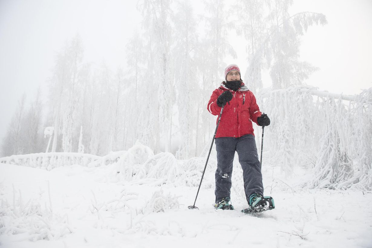 Lapsena liikuin paljon metsissä, mutta vuosien varrella se jäi. Lumikenkäilyn löysin nelikymppisenä. Menin perheen kanssa Lappiin laskettelemaan, mutta rinteessä tajusin, ettei vauhti ole minua varten. Päätin kokeilla lumikenkiä. Oli yllätys, miten ihanaa se oli.