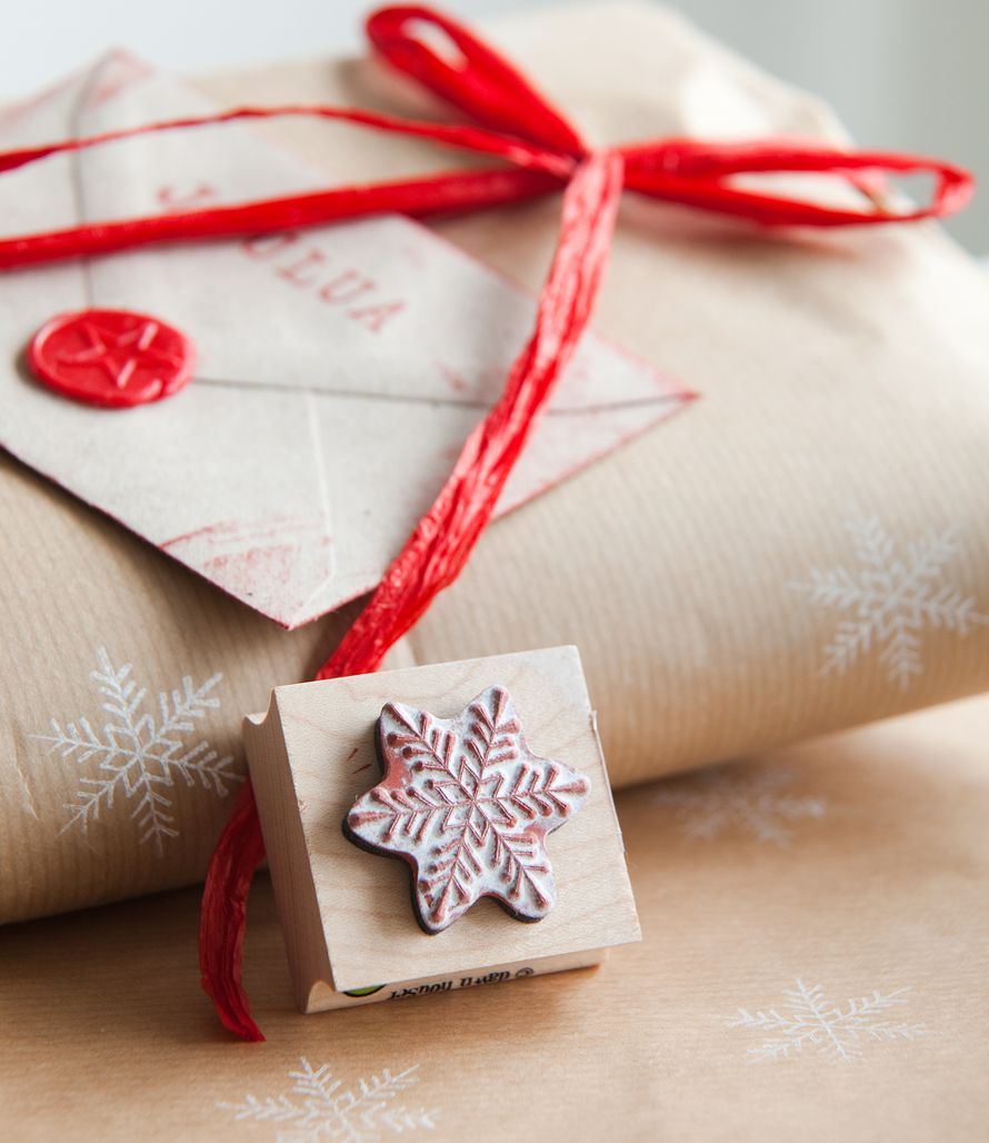Kuvioi voimapaperi leimasimella kauniin jouluiseksi. Leimasimia myydään askarteluliikkeissä.