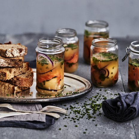 Tämä rustiikkinen amuse bouche on yhdistelmä ranskalaisia maalaismakuja. Ankankoipipalat portviinillä maustetussa hyytelössä rapean maalaisleivän kanssa ovat mieleenpainuva herkku tunnelmallisessa juhlapöydässä.