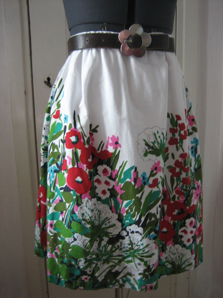Tämä oli taas niitä (ei-niin-onnistuneita) projekteja... :D Alunalkaen tästä piti tulla mekko, mutta toisin kävi. Itseasiassa sain mekon ommeltua lähes valmiiksi, mutta sitten huomasin, että olin valinnut vartalolleni täysin epäsopivan mallin (en viitsi mainita lehteä tai mallia). Yläosa oli aivan järkyttävä teltta, josta ei saanut mitenkään hyvää. Joten ei muuta kuin sakset käteen, ja yläosa hiiteen. Kangasta ei kylläkään jäänyt edes vyotärökaitaleen vertaa, joten jouduin vaan kääntämään kangasta vyötäröltä niin, että sain ommeltua hameeseen kaksi kuminauhakujaa. Ei niin tyylikäs ratkaisu, mutta ainoa vaihtoehto tässä tilanteessa (hameessa on vuorikin). Tähän projektiin meni yksi heinäkuinen viikonloppu (kiroillen), ja nyt jälleen muistan, että miksi en yleensä juurikaan ompele...