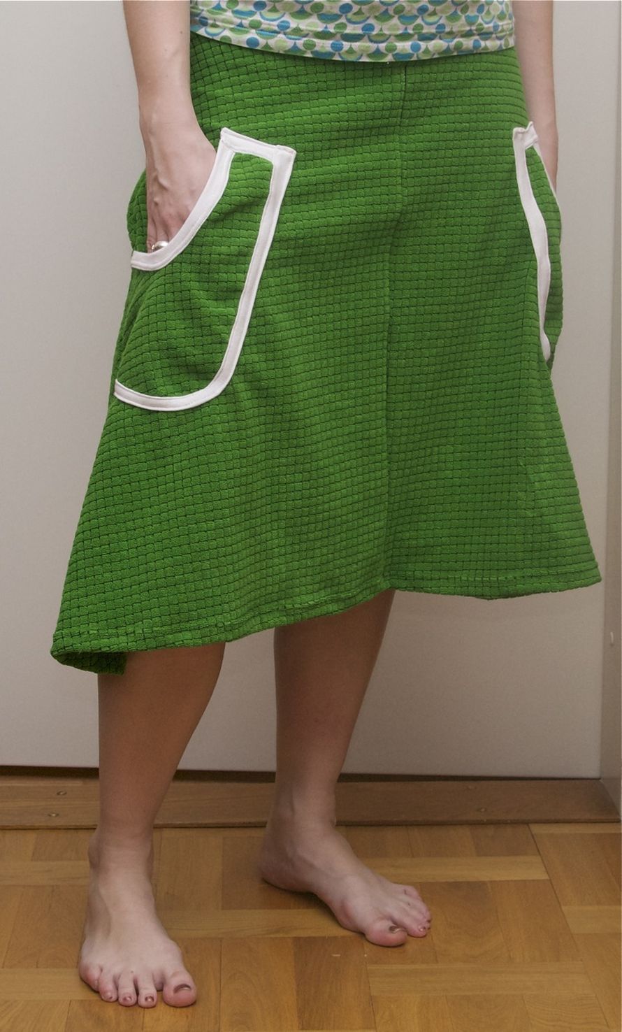 Lisäsin hameeseen taskut, jotta ulos mennessä ei aina tarvitse ottaa mukaan laukkua tai takkia :)