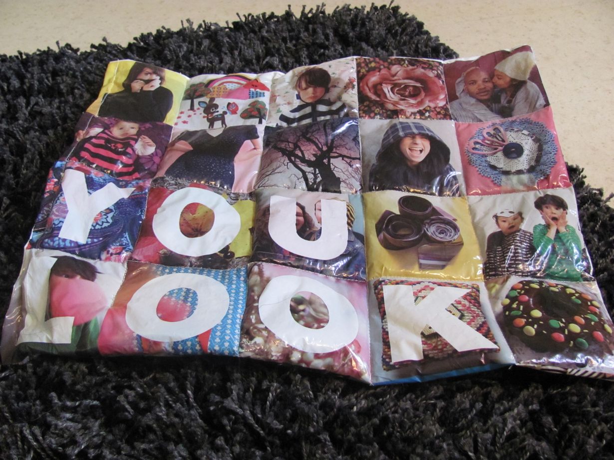 Innostuin KappAhlin ihana kuvioisesta muovikassista! Niimpä leikkasin mieleiseni kuvion irti, ja ompelin muovikassista ja paksusta huovasta itselleni istuinalustan, jossa on tikattu kuviota! Todellista kierrätystä, eikä tällainen istuinalusta tule varmasti ihan heti vastaan! :)