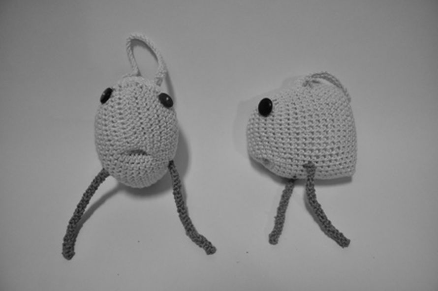 Kalastajanlangasta virkattu pehmolintu, jonka täytteenä on vanhan tyynyn sisälmykset ja silminä kirpputorilta löydetyt napit. Soveltuu pienten lasten viihdykkeeksi automatkoille, sillä lintua voi tanssittaa kantokahvasta hyppyyttämällä.