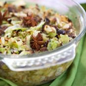 Pilko kaali pieneksi. Keitä kaali ja puuroriisi vähässä vedessä. Lisää joukkoon pari lihaliemikuutiota. Anna kattilan kannen olla hieman raollaan, jotta riisi ei kiehu yli. Kun kaali on kypsää, lisää joukkoon siirappi sekä iso sipuli.