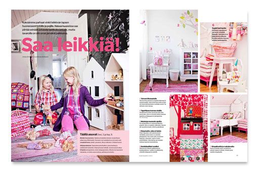 Villinä väreihin Eevin ja Iisan huone hehkuu pinkkiä ja punaista, Eemil ajaa autorataa sinivioleteissa sävyissä. Poimi vinkit leikki-ikäisen huoneen uudistamiseen! |