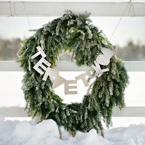 Taivuta kranssin pohjaksi rengas metallisesta puolalangasta. Tee sitten varvuista pieniä nippuja, jotka sidot renkaaseen kieputtamalla lankaa niiden ympärille. Jatka nippujen sitomista, kunnes rengas on kokonaan peitetty varpunipuilla. Lisää koristeeksi helmiä ja nauhaa.