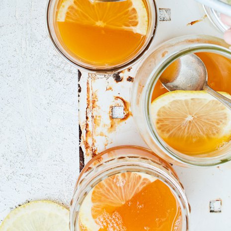 Kuori pois hillon pinnalle noussut vaahto. Purista joukkoon limen mehu ja raasta sekaan inkivääri. Sekoita tasaiseksi.