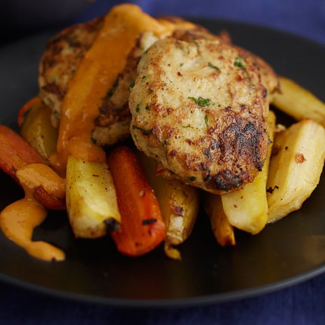 - Muotoile taikinasta 10-12 pihviä leivinpaperille. Paista noin 10 minuuttia kunnes pihvit ovat kypsiä.