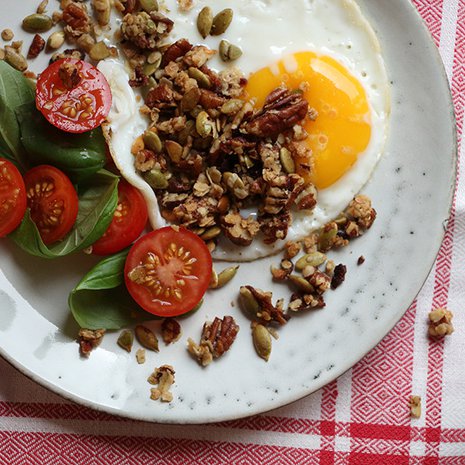 Nauti päivän suositus eli kourallinen pähkinöitä granolana aamu- tai välipalalla.