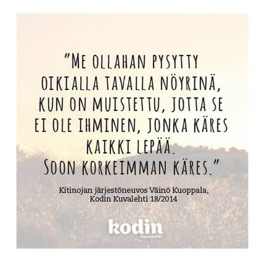 Korkeimmasta kädestä 15.10.2014 klo 7:00 Mikä on sinun voimalauseesi? Kerro se meille muillekin kirjoittamalla kommenttikenttään. Tilaa Kodin Kuvalehti ajatus oivallus voimalause Tilaa Lue digilehtenä