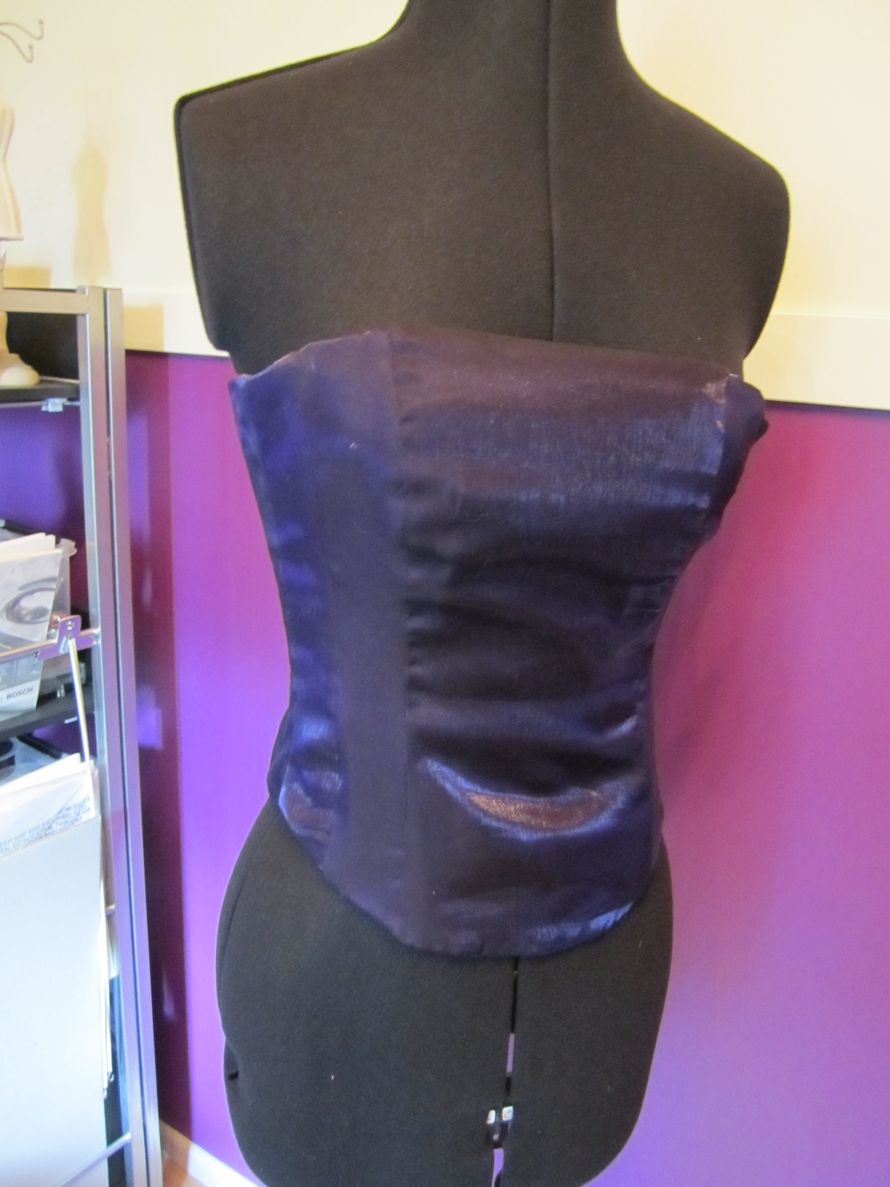 myytävä pieni kokoinen muoviluutettu korsettitoppi, toisella sivulla vetoketju. tehty Suuri käsityökerholehden kaavoilla, en nyt muista missä lehdessä oli.