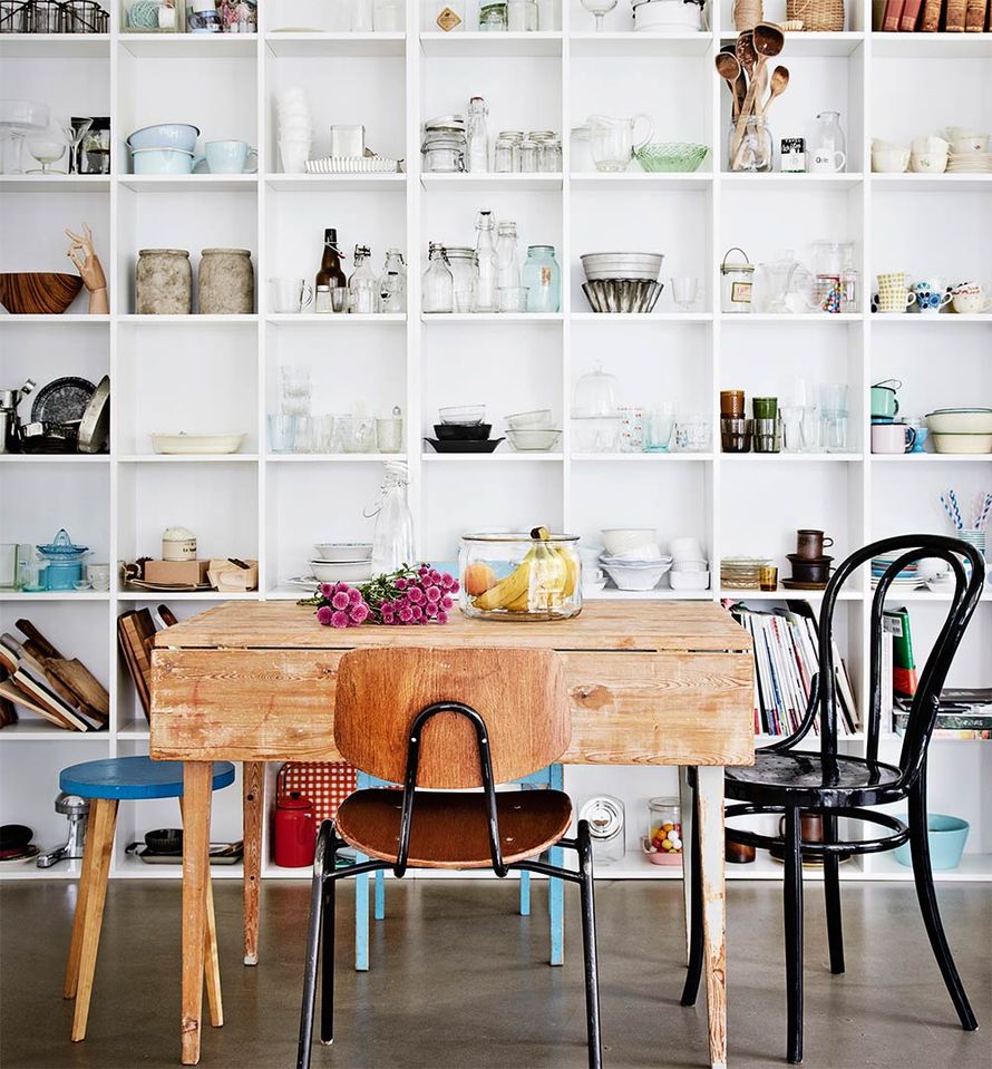 Älä tunge pieneen tilaan liikaa tavaraa. Sisusta koti asukkaille, älä vieraille. Toki on hyvä ajatella myös mahdollisia vieraita, mutta varatuolit ja astiat voi kyläilyjen välillä viedä vaikka vinttiin. Pidä kaapeissa vain tarpeelliset, juuri nyt käytössä olevat astiat, esineet ja kausivaatteet.