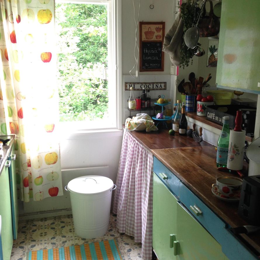 Avohyllyt olisivat keittiössäni hankala ratkaisu, koska päinvastoin, tavaraa pitäisi piilottaa. Keittiöni näyttää jo nyt siltä, että sen on suunnitellut Frida Kahlo. Tarvitsisin liukuoven, jonka takana oleville avohyllyille tavarat voisi piilottaa.