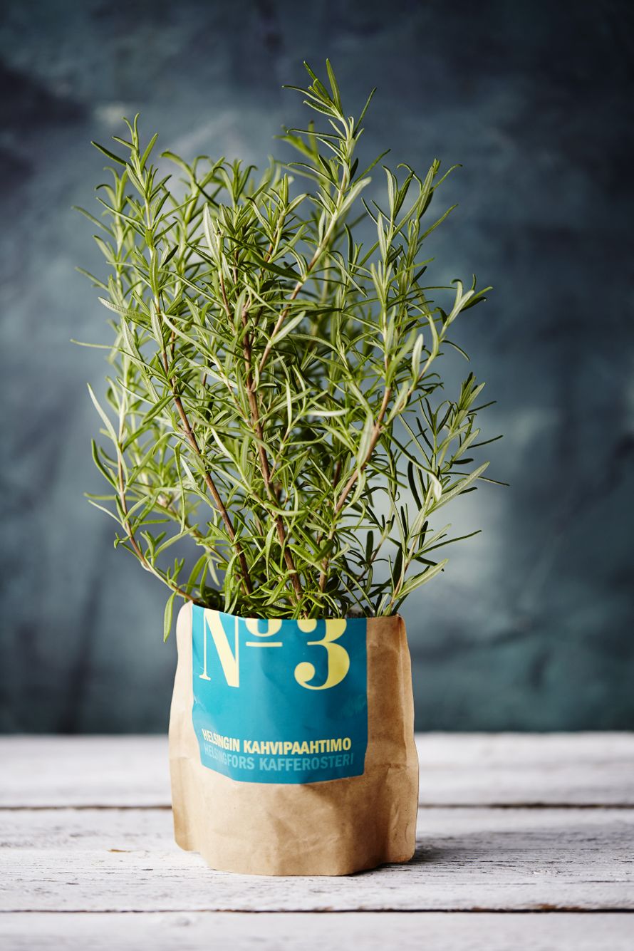 Askartele tyhjästä pussista kukka- tai yrttiruukun suoja. Avaa pussi, taittele reunat ja sujauta ruukku pussiin. Kahvipussi pitää myös kasteluveden sisällään.