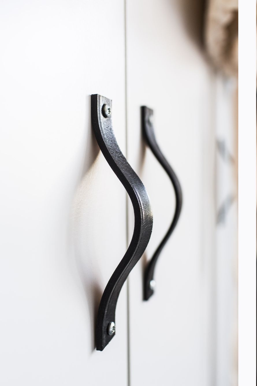 Vöistä saa esimerkiksi kauniita ovenkahvoja ja laatikon vetimiä. Yllä olevassa kuvassa nahkavyöstä on leikattu noin kymmenen sentin pätkät, joihin tehtiin molempiin päihin kirurginveitsellä viillot ruuvikiinnitystä varten.