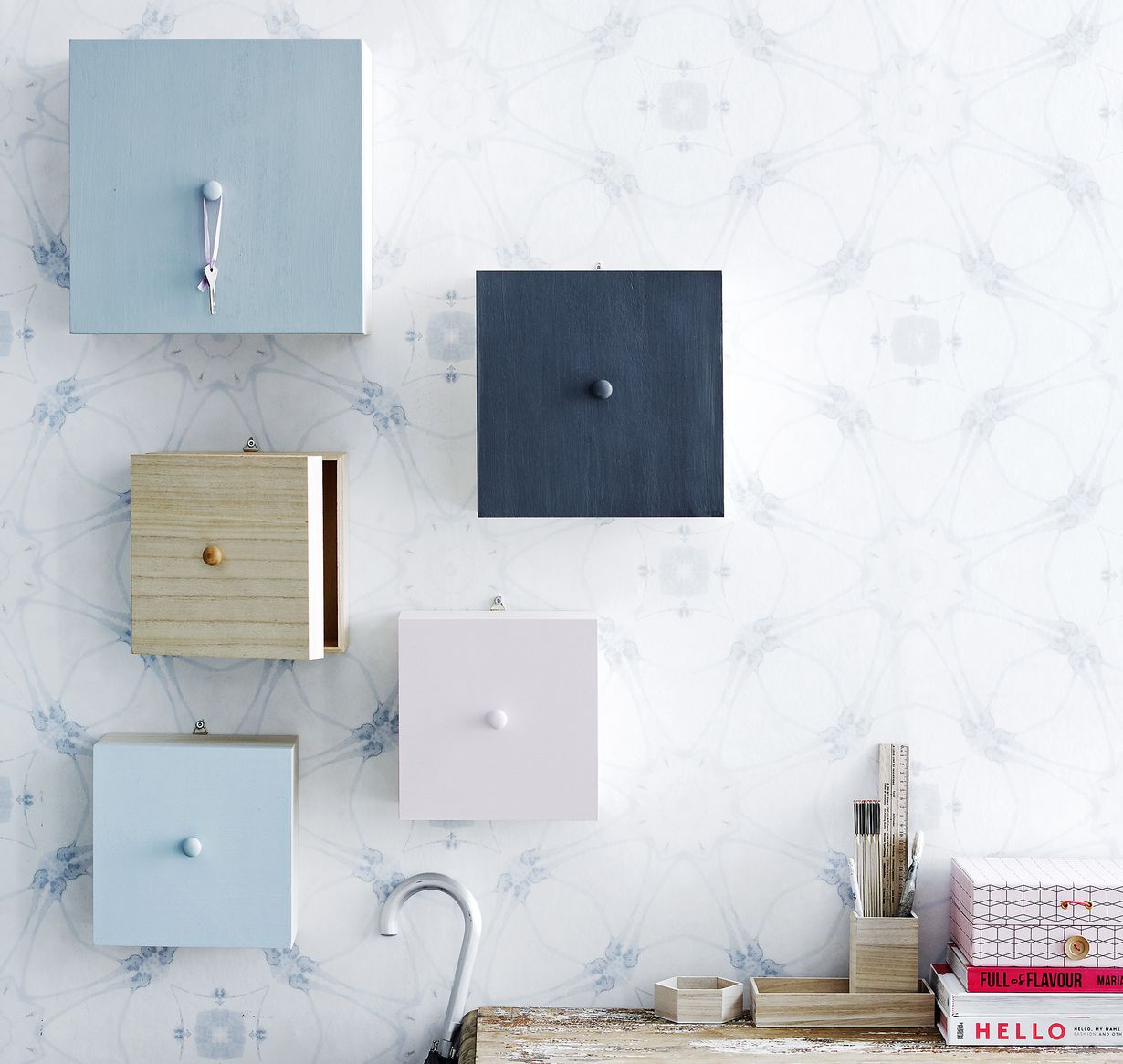 Tee pikkukaapit puisista laatikoista tai lokerikoista, joita myyvät muun muassa Ikea ja Granit. Kiinnitä kaappi seinään ruuveilla kahdesta kohdasta.