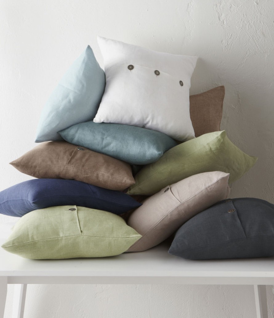 Päivitä sohvatyynyt. Yhdistele pehmeitä pastellivärejä tummiin murrettuihin sävyihin. Pellava on muodikas materiaali, joka vain paranee rypistyessään. Tyynyt 13,95 e/kpl, Jotex.