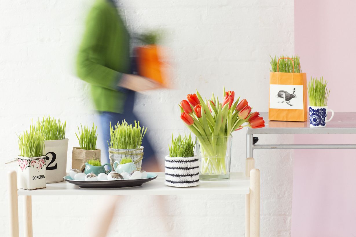 Komeaa ja tukevan näköistä pääsiäisruohoa saa myös vaihtamalla tutun rairuohon vaikkapa ohraan tai vehnään.
