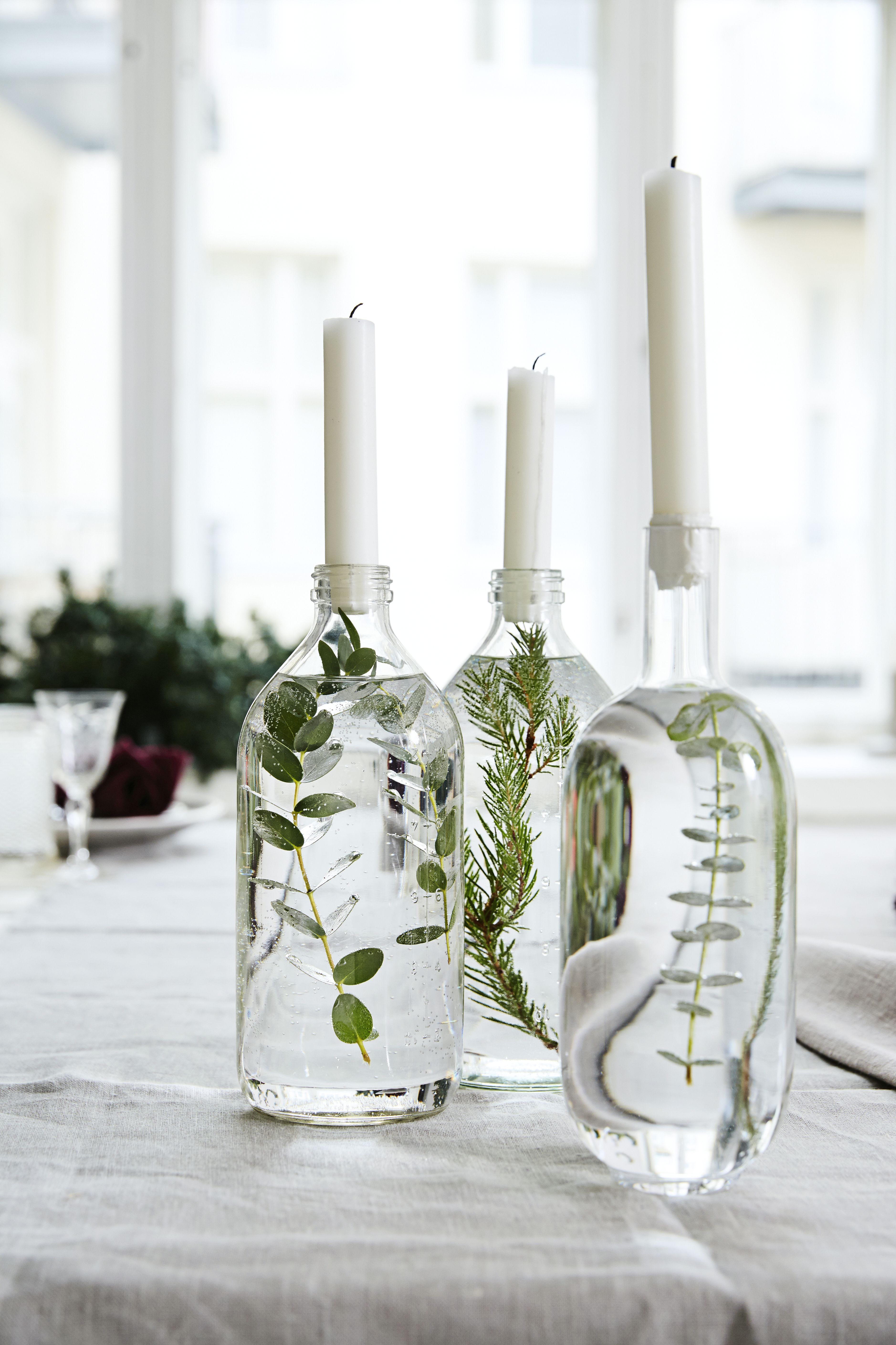 - Voit myös tehdä asetelmia erikokoisista ja -muotoisista pulloista, joihin olet laittanut erilaisia oksia.
