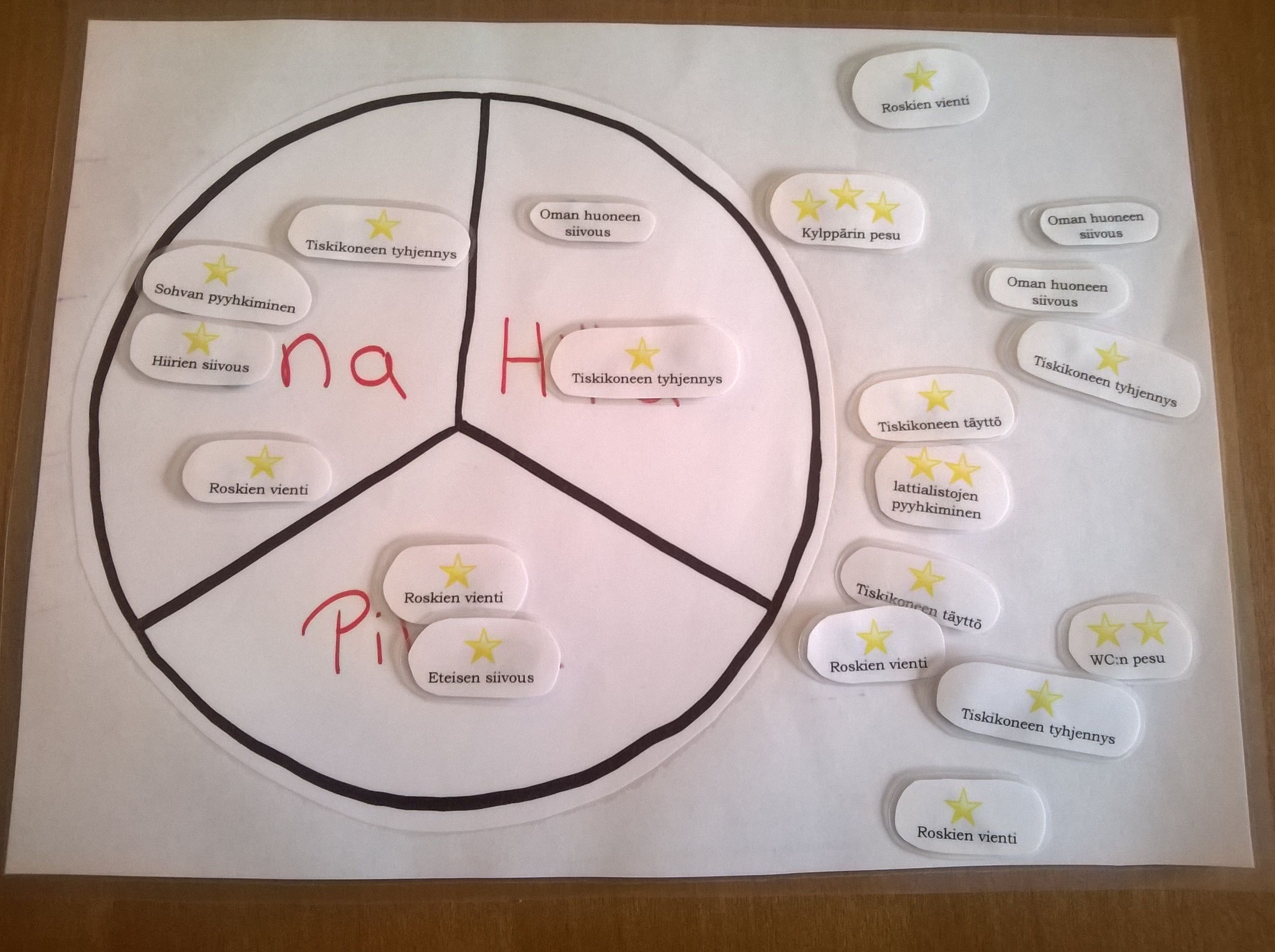 Entiseen yläluokkaan sopii nyt kaksi makuuhuonetta, vaatehuone, kylpyhuone sekä suuri aula, jossa voi roikkua puolapuissa ja kiipeillä narutikkailla. Puolapuut löytyivät toisesta lakkautetusta kyläkoulusta. Sienna esittää taidonnäytteen.