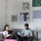 Persoonalliset valinnat tapeteissa ja maalisävyissä ovat kuin talon asukkaat: rempseitä ja iloisia. Samin mummulaa ei ole siistitty remontissa näkymättömiin, vaan osa vanhoista huonekaluista ja tekstiileistä piristää yhä kotia. Sukupolvien kerrokset saavat näkyä.