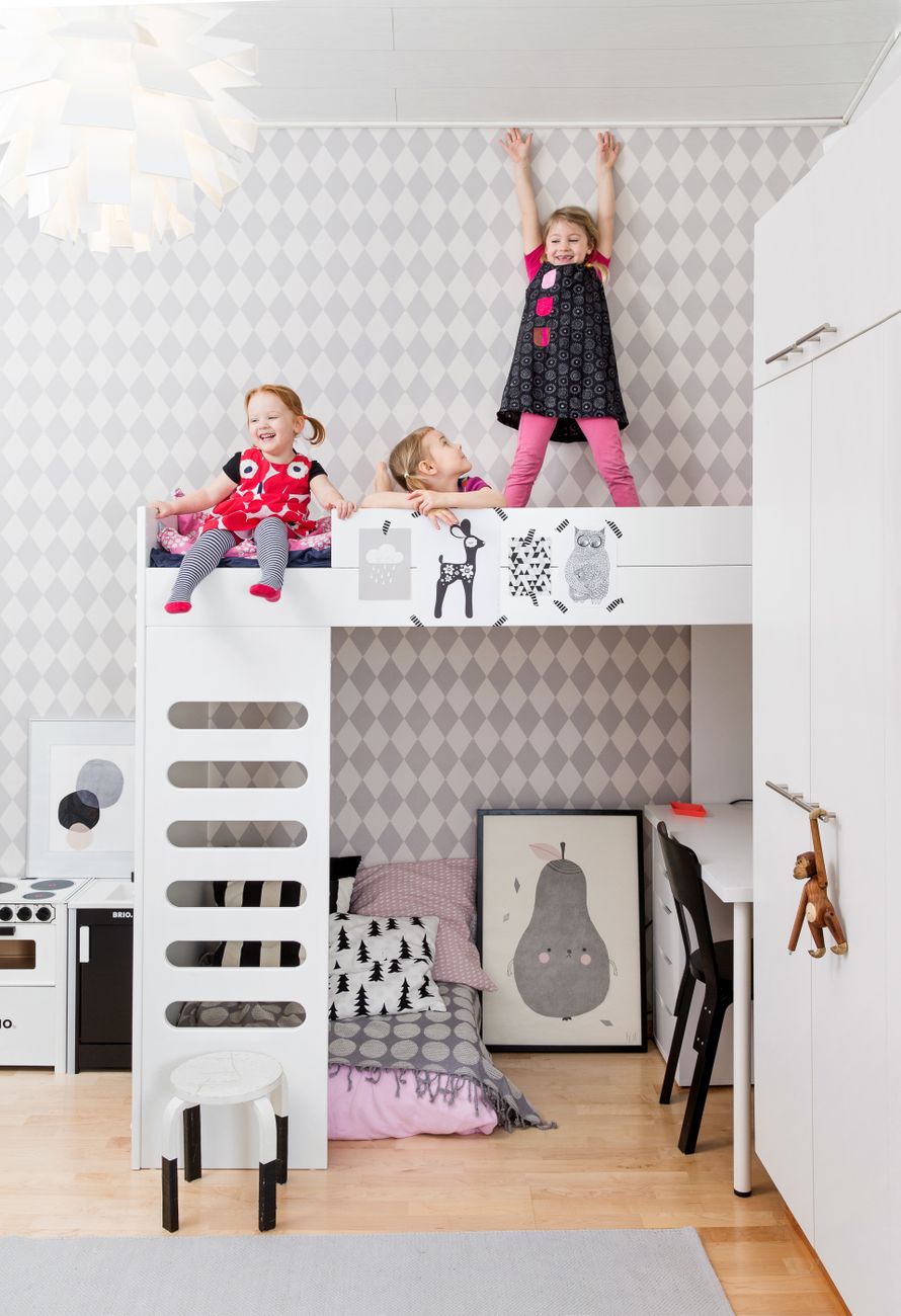 Asukkaat: Sisustusalan opiskelija ja ammattijärjestäjä Maria Lindell, 35, kehitysjohtaja René Lindell, 39, sekä Leia, 7, Tilda, 5, ja Laura, 3. Kissat Bella ja Fanny.