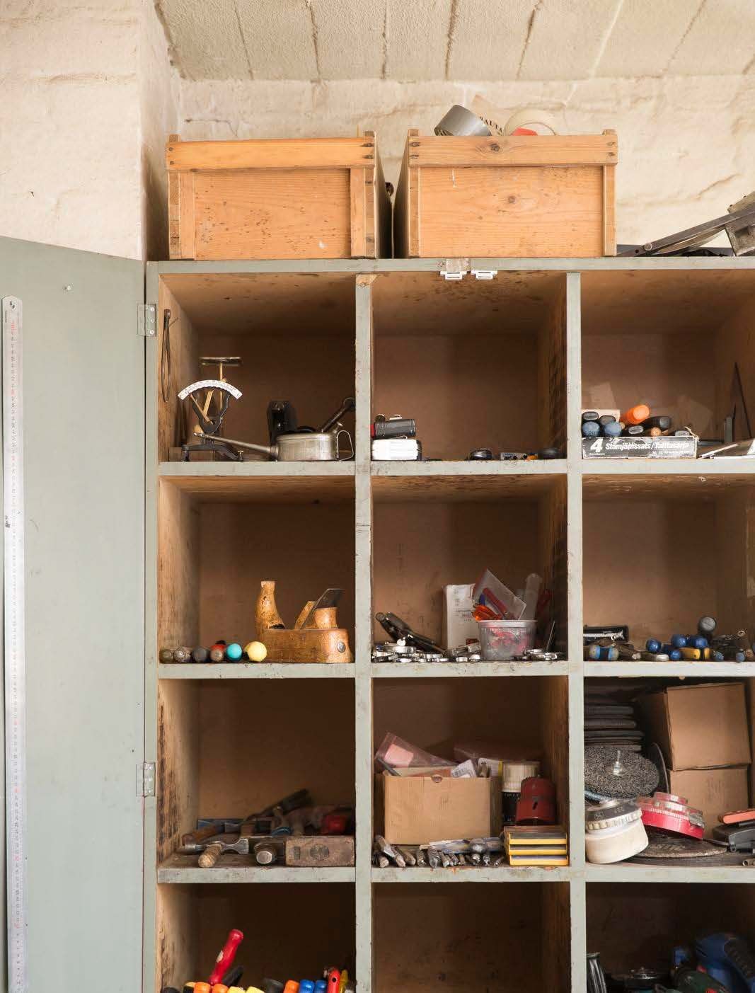 Taiteen tekeminen on yksinkertaista omassa rauhassa: työvaatteet niskaan ja pihan poikki navettaan. Ei haittaa, vaikka rälläkkä huutaa iltamyöhään. Puutyöt Meri ja Ilmari tekevät navetan yläkerrassa ja hitsaamisen ja muut tulityöt alhaalla.